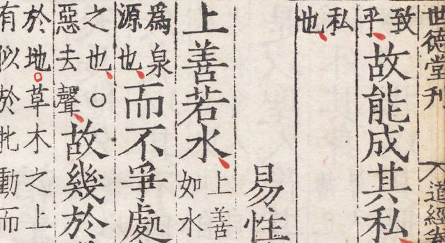 老子有言:「上善若水,水善利萬物而不爭,處眾人之惡,故幾於道。」水隨者引力,自然的往下流,流到最低下的地方,才能有利於天下萬物。「水曰潤下」,水的本質就是不爭,利萬物;取之於社會,用之於社會。投資有了獲利要回餽於眾生;在職場上有能力,就要懂得付出,幫助同事。現在能幫助別人,以後也許更需要別人幫助,這就是所謂「得道多助,失道寡助。」